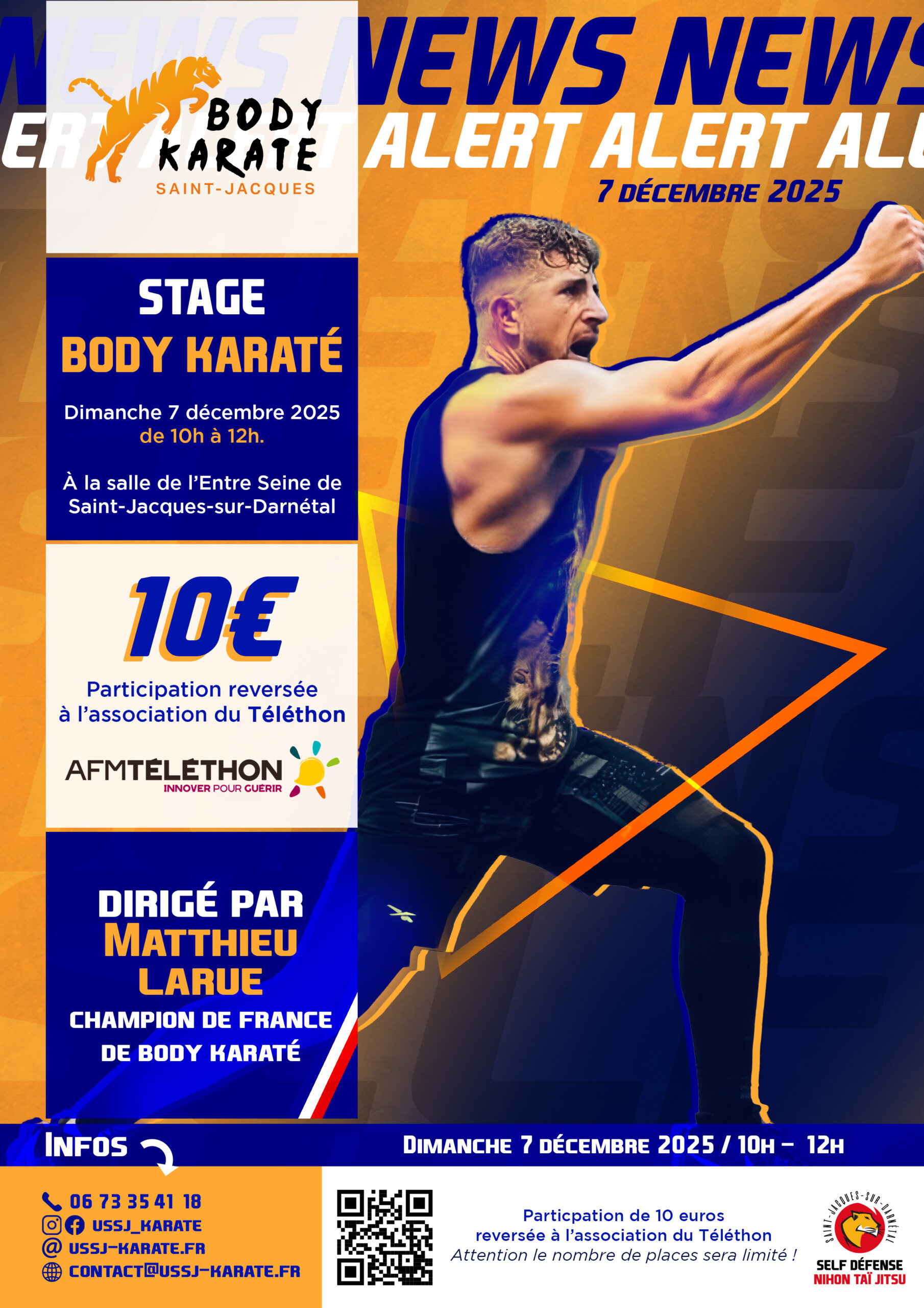 En savoir +« L’ussj karaté est un club qui propose du « Nihon Taï jitsu », art martial de combat et du « Body karaté », activité de fitness, pratiquée en musique avec des mouvements de karaté »